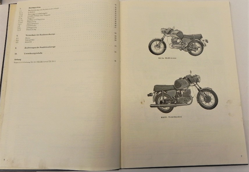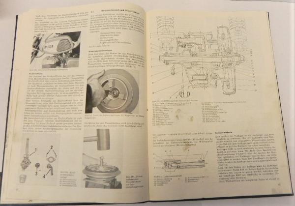 Größe: 21 x 30 cm Seiten: 104 Sprache: deutsch Erscheinungsdatum: 3. unveränderte Auflage - Redaktionsschluß 30.11.1977 Herausgeber: VEB Motorradwerk Zschopau Zustand: Einband alters- und nutzungsbedingt bestoßen und verschmutzt, Seiten innen mit leichten Verschmutzungen (Fingerabdrücken etc.) - besonders am Rand und an den Ecken (vom Blättern), letzte unbedruckte Deckseite hinen fehlt - kein Werkstattexemplar - alles einwandfrei lesbar bzw. erkennbar!