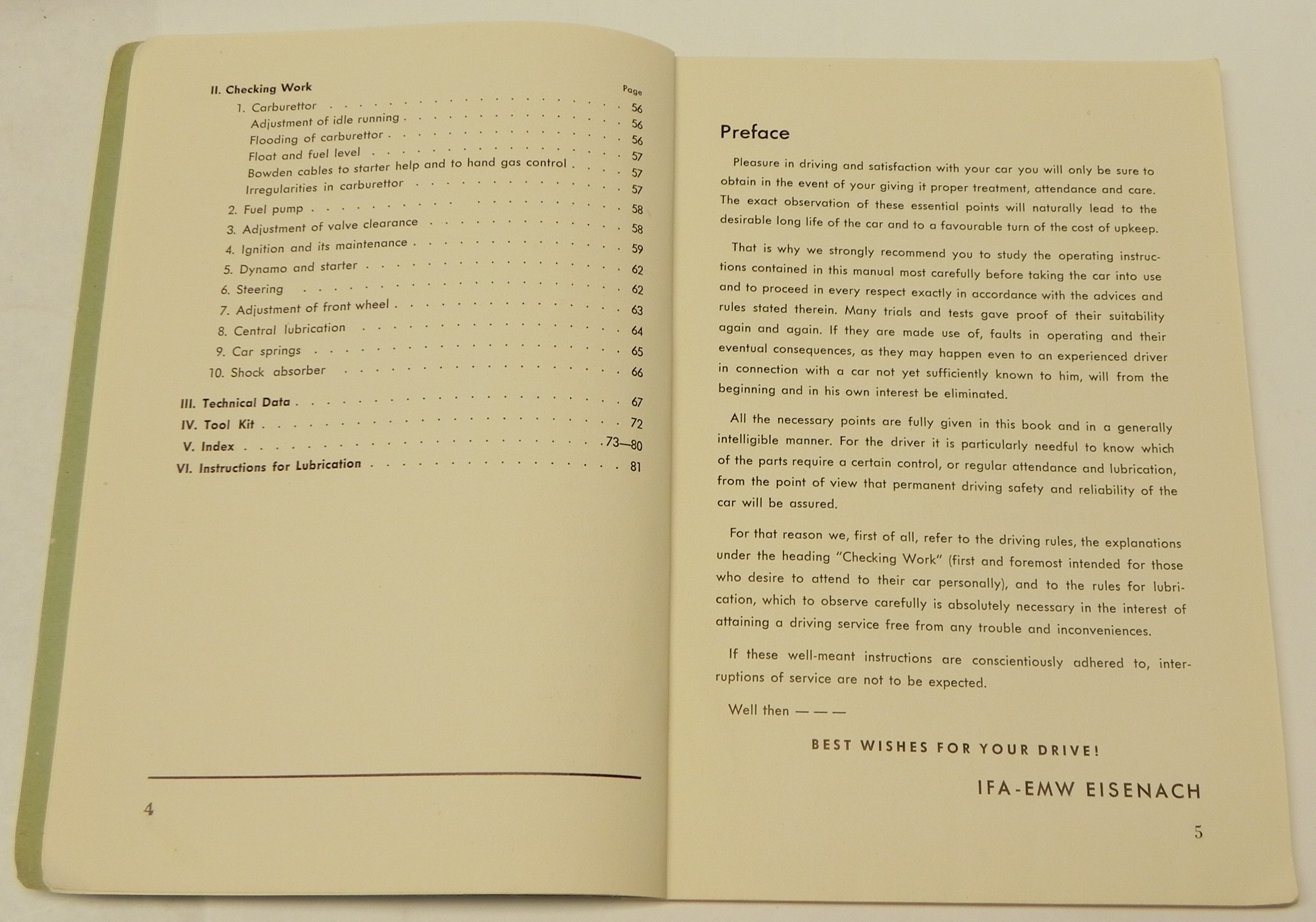 Abmessungen ca. 15x21 cm, 83 Seiten, herausgegeben von IFA-EMW Eisenach