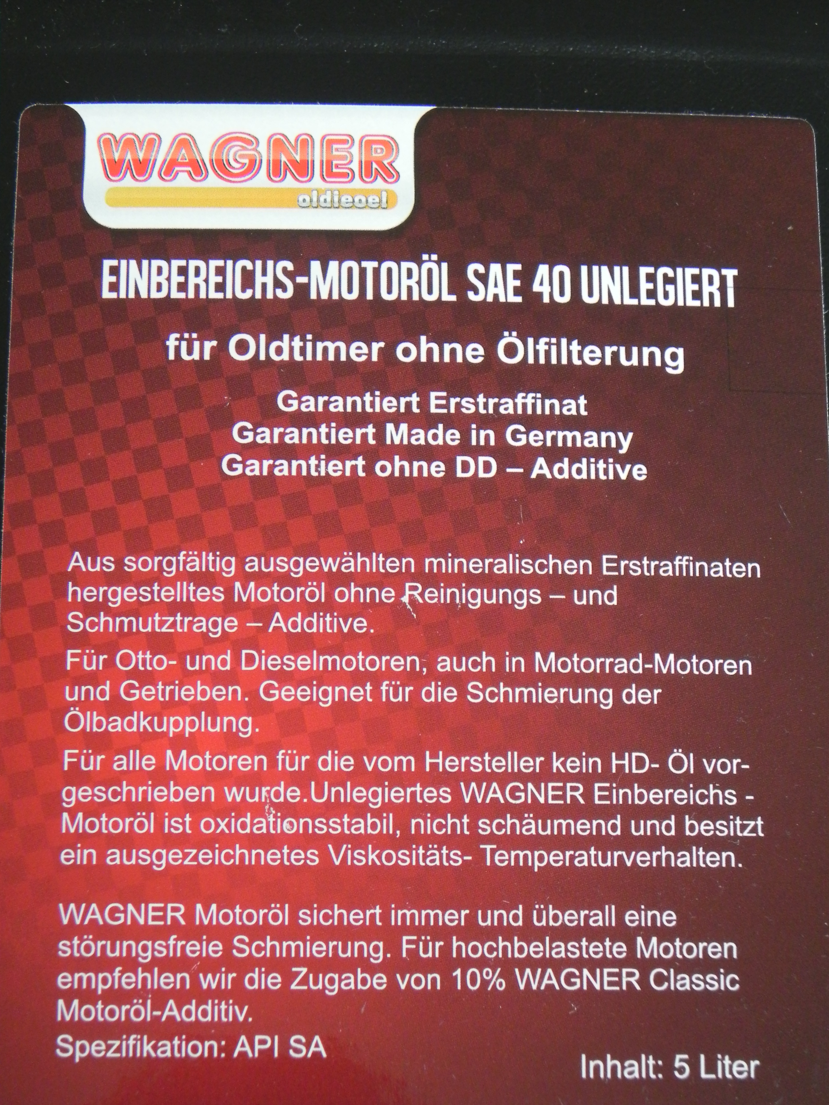 Das unlegierte Motornöl ist oxidationsstabil, nicht schäumend, besitzt ein ausgezeichnetes Viskositäts-Temperaturverhalten und garantiert eine einwandfreie Schmierung bei tiefen und hohen Temperaturen.